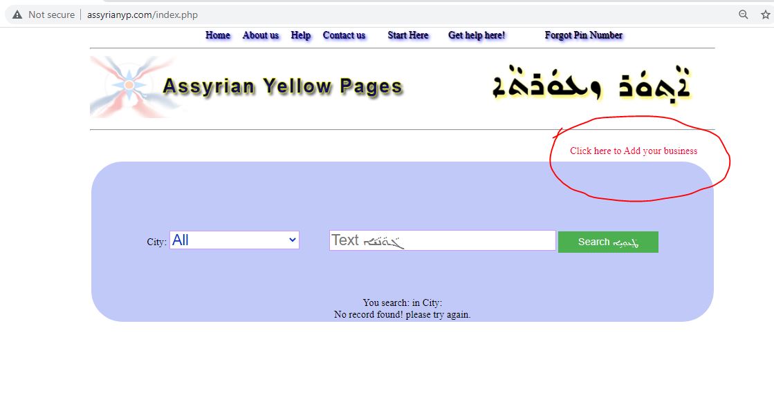 After you saved the info into the sebsite. Assyrian Yellow Pages website will create and send you a PIN code.